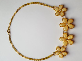 Новое ожерелье, металлическая двойная цепочка с 4 цветками.