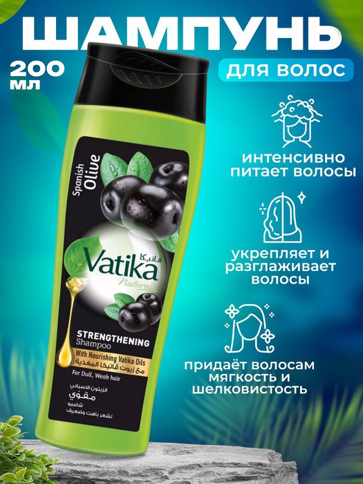 Современная формула шампуня Dabur VATIKA Olive обеспечивает глубокое проникновение активных компонентов в структуру волос, обеспечивая волосам и коже головы натуральное питание. При регулярном использовании шампунь Оливковый делает волосы здоровыми и красивыми, придаёт им силу и природный блеск. Шампунь с оливковым маслом придает волосам шелковистость и мягкость, помогает бороться с секущимися кончиками волос, перхотью, поддерживает здоровье и улучшает внешний вид слабых, тусклых и сухих волос. Оливковое масло придаёт волосам силу, блеск, укрепляет и разглаживает их.