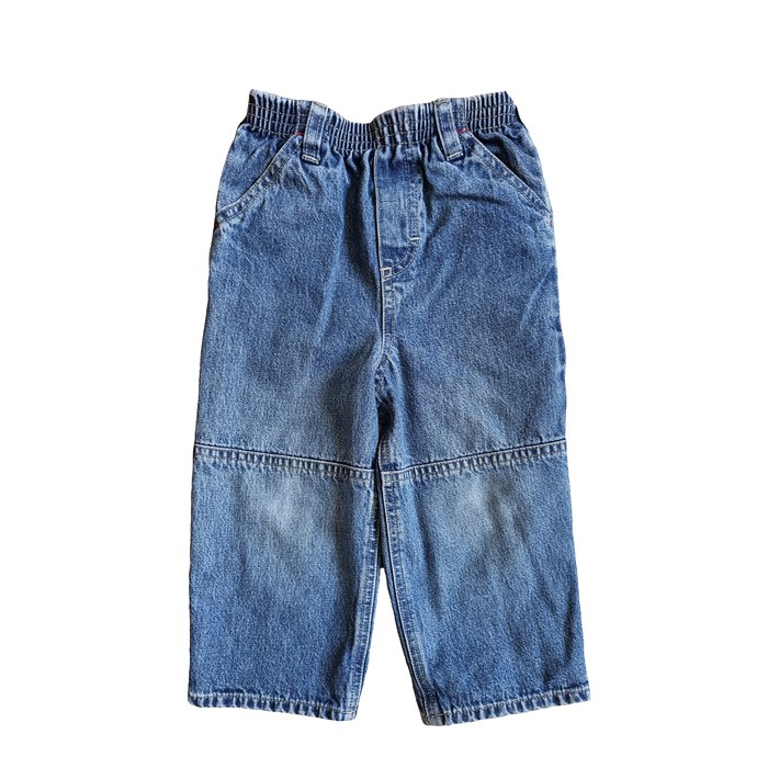 Б/У джинсы известного, американского бренда OshKosh, Straight Jeans. Джинсы Straight утепленные на подкладке, классическая и прочная джинсовая ткань с четырьмя карманами никогда не выйдет из моды. Красивые и удобные однотонного цвета. Резинка на поясе не сковывает в движении и очень эластична. Отлично будут смотреться с регланом, боди или другим топом. Прекрасно подойдут для носки дома или для игр на улице. Передние косые карманы, эластичный пояс со шлевками. Машинная стирка. Цвет: Dark Rinse. Состав: 100% хлопок. Размер: 18M для мальчика 18 месяцев, ростом 76-81 см. и весом 11,1-12,5 кг. Состояние: б/у, отличное.