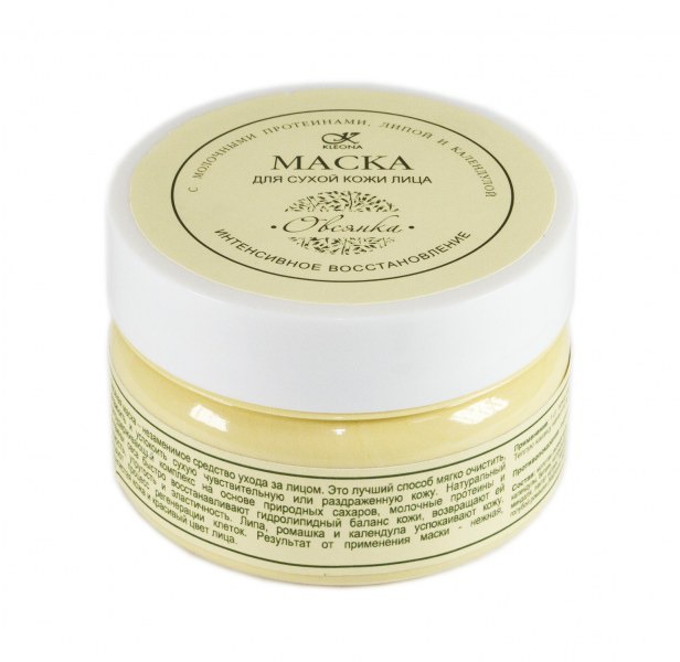 Овсяная маска – незаменимое средство ухода за лицом. Это лучший способ мягко очистить, увлажнить и успокоить сухую чувствительную или раздраженную кожу. Натуральный влагоудерживающий комплекс на основе природных сахаров, молочные протеины и протеины овса быстро восстанавливают гидролипидный баланс кожи, возвращают ей гладкость, упругость и эластичность. Липа, ромашка и календула успокаивают кожу, ускоряют процесс регенерации клеток. Результат от применения маски - нежная, бархатистая кожа и красивый цвет лица.