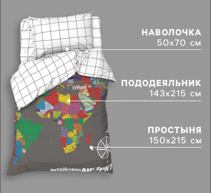 Заказать Комплект постельного белья из бязи Карта Мира на русском