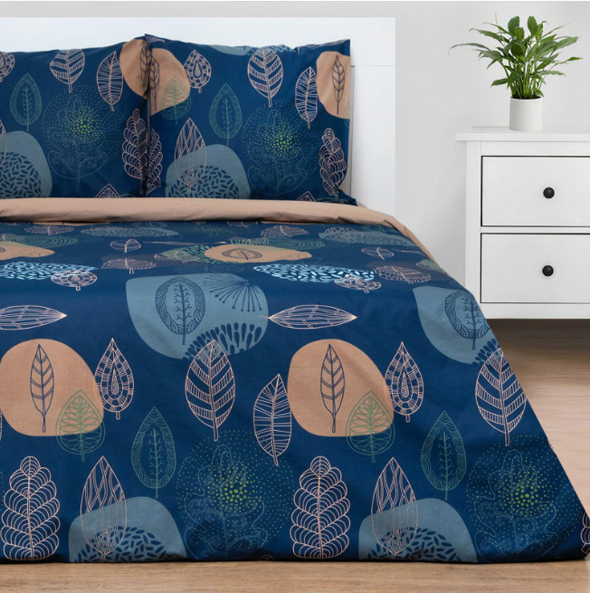 — Комплект постельного белья из поплина Листья сине-зелёный