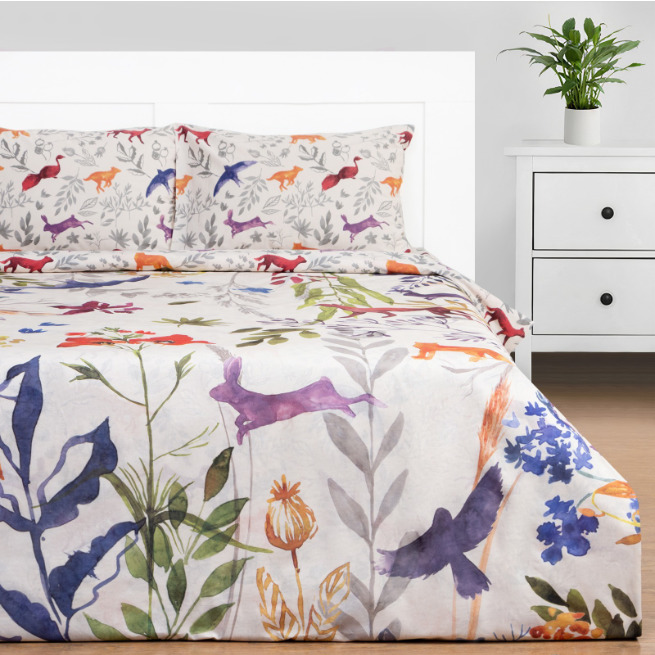 Комплект постельного белья из поплина Лепесток синий/жёлтый