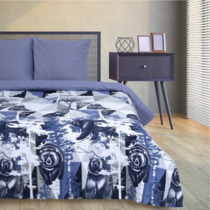 Комплект постельного белья из поплина Лепесток синий/жёлтый