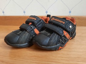 Б/У, кроссовки российского производителя Антилопа, артикул 24331-2242. Контрастная строчка придает кожаному верху непринужденный вид, а застежки на липучках обеспечивают легкий доступ. Резиновая подошва обеспечивает хорошее сцепление с игровой площадкой, поэтому ваш крутой ребенок всегда будет устойчивым. Цвет: черн./оранж. Состав: верх искусственная кожа 100%, подкладка текстиль, подошва резина 100%. Размер: 26 наш, длина по стельке 17 см. Без коробки. Состояние: б/у, хорошее, есть потертости на носке.