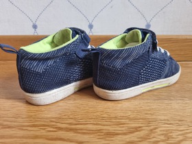 Б/У кроссовки известного, американского бренда Carters, High Top Sneakers. Комфорт, стиль и универсальность сочетаются в этих современных кроссовках с искусственной шнуровкой спереди. Верх из ткани с застежкой на липучку через петлю. Мягкие стельки. Петли для шкафчиков. Цвет: Navy. Состав: верх 100% текстиль, подошва 100% резина. Размер: 8 US, наш 23, длина стопы 14,6 см. Состояние: б/у, хорошее.