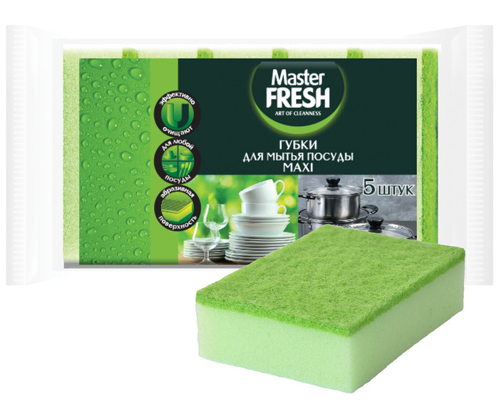 — MASTER FRESH Губки для мытья посуды Maxi 5шт