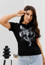 Футболка женская - это классика женского гардероба любой девушки. Это базовая модель с ярким принтом отлично смотрится с джинсами, юбками, брюками. Прямой силуэт, втачной рукав, горловина округлой формы обработана обтачкой из основного полотна.