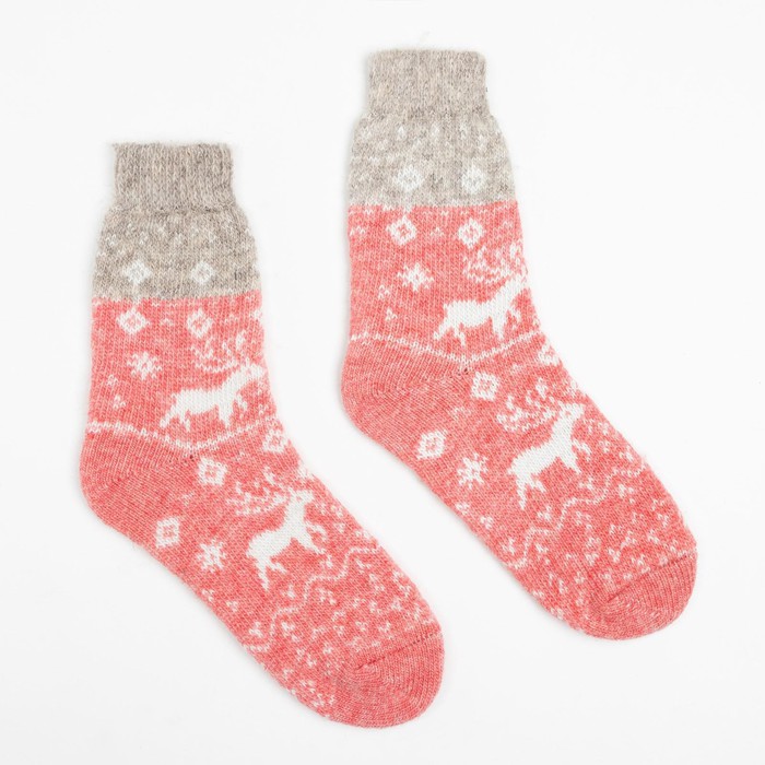 Носки шерстяные Олени коралловые р-ры 23, 25
