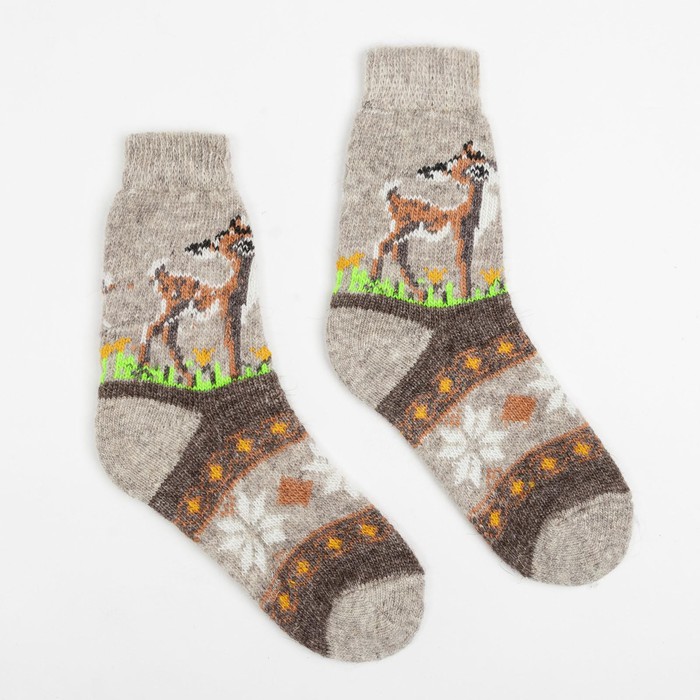 Заказать Носки шерстяные женские Оленёнок серо-бежевый р23