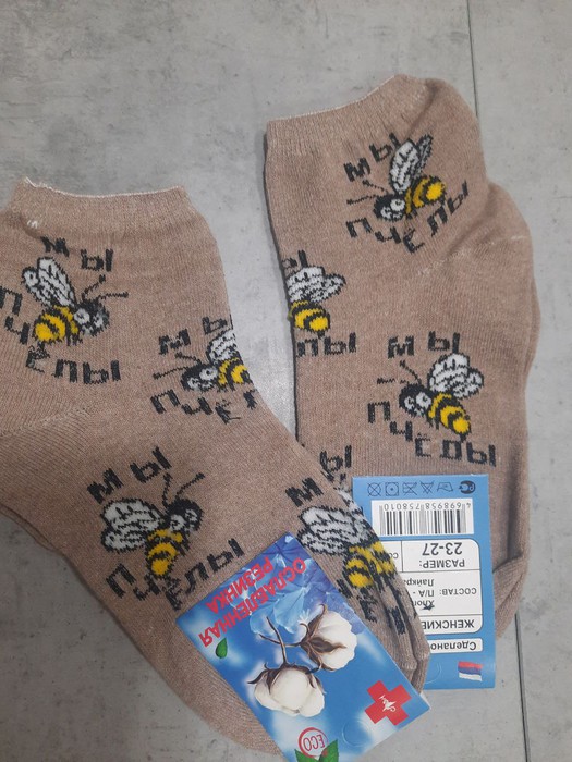 — Носки женские хлопковые Ромашка ЛБ-2 пчелы беж