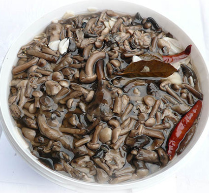Состав: грибы, очищенная вода из артезианской скважины, соль, перец душистый, чеснок, семена горчицы, укроп, лимонная кислота, перец стручковый.