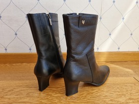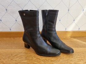 Ботильоны демисезонные, утепленные байкой. Состав: 100% натуральная кожа, искусственный мех. Изготовлены по ГОСТ 26167-84 в России. Цвет: черный. Размер: наш 38. Состояние: б/у, отличное.