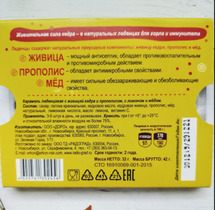 Леденцы содержат натуральные природные компоненты: живицу кедра, порполис и мёд.