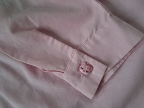 Верхняя пуговка и пуговеи на манжетах хеллоу китти, остальные перламутровые