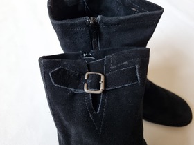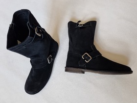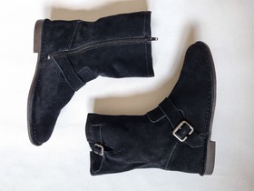 Новые демисезонные, замшевые сапоги известного, американского бренда Hush Puppies, Women's Knox Boot. Hush Puppies - это бренд повседневной обуви из США. Это высокие ботинки Knox Boot для женщин, модели серо-черного цвета с верхом из овчины из замши, мягкие и удобные, с хорошей текстурой, удобные в уходе, прочные и долговечные. Дизайн без подкладки, мягкие и удобные, супер легкая технологичная подошву, чтобы ваши ноги продолжали носить комфорт при длительных прогулках. Резиновая подошва с каблуком 13 мм, легкая и эластичная. Высокий стиль, полный смысла моды. Качественные материалы, женственность, титановая фурнитура и ремни безопасности придают этому ботинку дополнительный интерес. Мягкая пена внутри и вышитая конструкция снаружи обеспечивают удобную посадку. Цвет: Black Suede. Состав: натуральная замша и резиновая подошва. Размер: 8 US, 38 наш, длина по стельке 24 см. Без коробки.