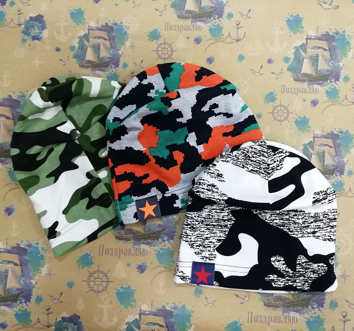 Шапка вязаная тонкая х/б Полоски/якорь 38-44