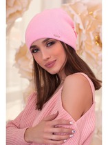 «Розария» - это невероятно нежный головной убор, связанный из полушерстяной пряжи мелкой узорной вязкой. Внутренняя мягкая резинка обеспечивает комфортную посадку и не оставляет следов на коже. Зажим на заднем полотне изделия образует цветок. Эксклюзивная брошь с камнями алмазной огранки лаконично дополняет модель и разместилась в центре цветка. Металлический брендовый логотип служит дополняющим элементом. Шапка изготавливается из мягкого материала, что позволяет изменять форму в связи с анатомическими особенностями головы или в зависимости от настроения и стиля. Аксессуар носят, немного приспустив, либо, напротив, плотно сдвинув на брови. В первом варианте задняя часть откидывается назад или сдвигается на бок, что выглядит весьма кокетливо. Такой способ наделит образ игривостью и женственностью.