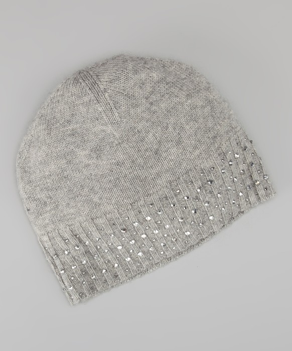 Новая кашемировая шапочка шотландского бренда Forte Cashmere, Flannel Crystal Rib Cashmere Hat украшенная кристаллами.