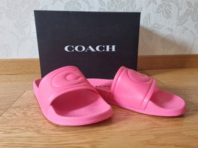 Новые оригинальные сланцы известного американского бренда COACH Ulla Rubber Slide. Эти непринужденные спортивные шлепанцы изготовлены из мягкой водонепроницаемой резины с тиснением логотипа. Контурная стелька обеспечивают комфорт в течение всего дня. А резиновая подошва обеспечивает долговечность скольжения. Цвет: Confetti Pink Rubber. Состав: 100% резина. Размер: 9 US, наш 39,5, длина по стельке 27 см, длина стопы 25,5. В коробке.