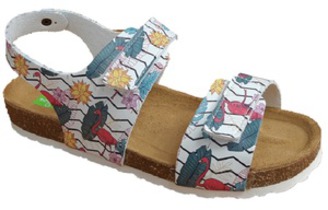 Внутренняя часть подошвы сделана из натуральной пробки. Подошва пробковая имеет внутренние углубления по всей степне ноги, за счет этого ножку находится в правильном и естественном состоянии. Благодаря использованию современных внутренних материалов позволяет оптимально распределить нагрузку по всей площади стопы и свести к минимуму ее ударную составляющую.Модель рекомендована для активного и пляжного отдыха. Подходит ежедневного ношения обуви.