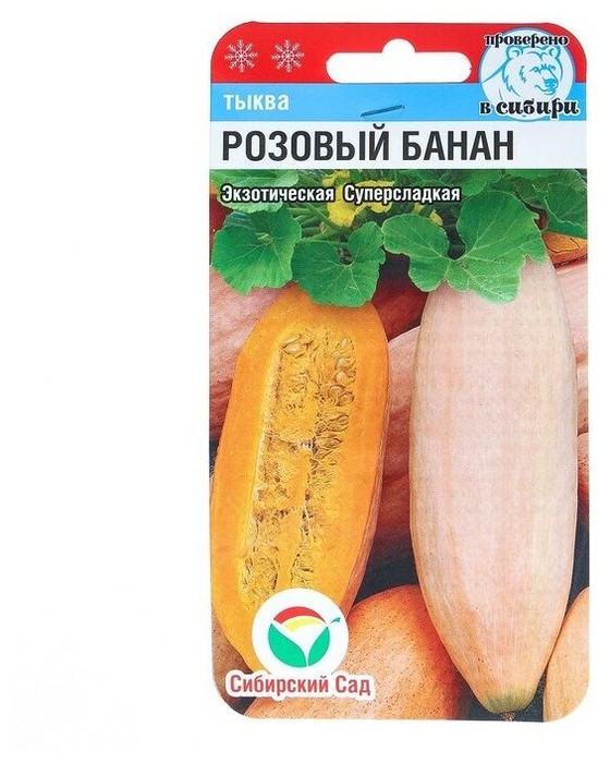 Среднеспелый (от всходов до созревания 95-105 дней) сорт крупноплодной тыквы. Растение длинноплетистое, мощное, плоды вытянутой веретенообразной формы длиной до 1,2 м, созревание 95-105 дней от всходов. Кожура тонкая, розового цвета, мякоть плотная, оранжевая, сладкая, мало волокнистая, отменного вкуса, лёжкость плодов высокая. Масса до 18 кг. Мякоть в замороженном виде может храниться очень долго без потери вкусовых качеств, что для тыквы является большой редкостью. Рекомендуется для приготовления тыквенных супов, вторых блюд, варенья и цукатов.