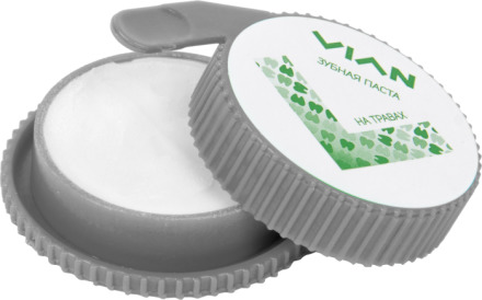 Состав: карбонат кальция, глицерин, кокосовое масло, ксилит, камфора, ментол, морская соль, эфирное масло чайного дерева, эфирное масло аниса, эфирное масло фенхеля, кокосульфат натрия (растительного происхождения).